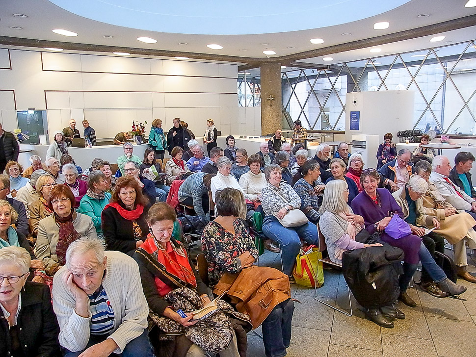 Gut besucht war die musikalische Lesung im Domforum in Köln am Montag, dem 12. Oktober 2015. Wir, als Zuhörer, konnten durch die Lyrik und die musikalische Begleitung für einen kurzen Augenblick dem fordernden Strom des Alltags entfliehen und uns in den Welten der drei Wortkünstler/innen und in den schönen Klängen der Klaviermusik wiederfinden.